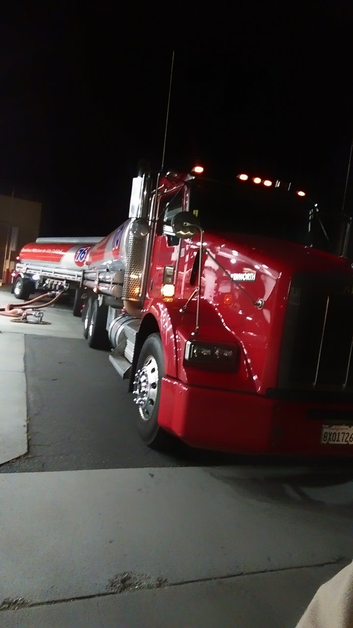 I am competition minded. You show me that fine truck with it's pretty parking at the fuel area. I want to take the truck and trailer and put up 50 dollars and seeif I can park it faster than you just so.