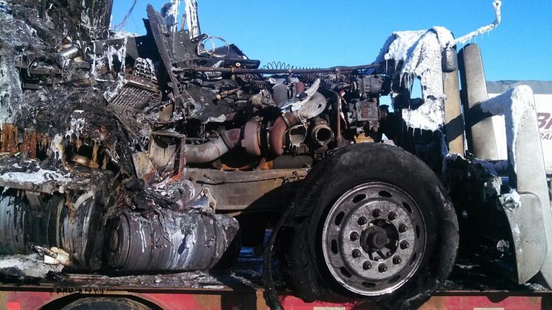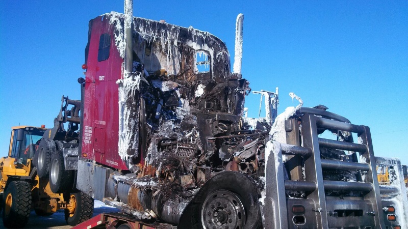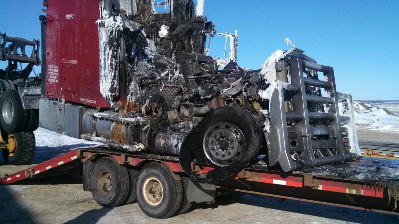 He made it. He said temps were near 40 below.e was traveling with another truck just about to step on the TransCanadian Highway when he saw smoke. He hit the shoulder, ran around the truck and saw flames. Hey got the dog out the truck and his phone. Everything else went up. I am glad for his sake that he was rolling with another trucker.