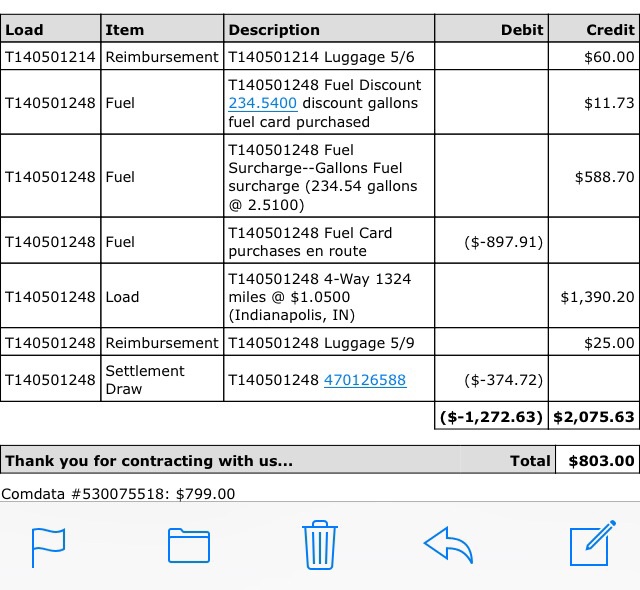 This is a trip to Indy that nets me 81 cents a mile . Always brand new equipment and a hotel every night. There are people in my business that make much more than that , consistently 3 k a week or more .
