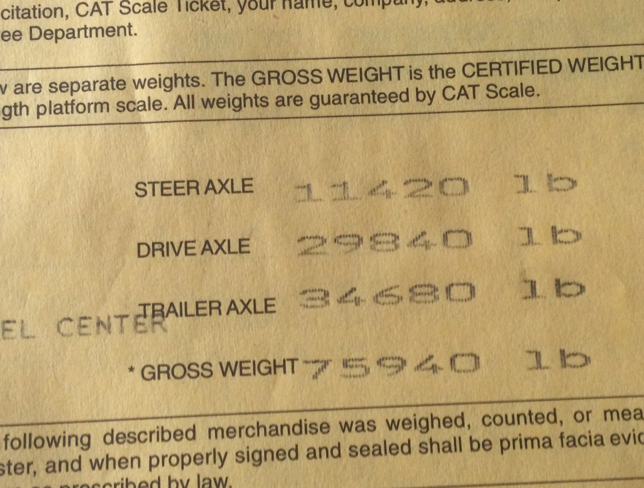 For many of you, you will probably not see more than 80000 GVW. Some of you will. But imagine going 90000, with an overweight permit. Most states will give you 40on the trailer and 40 on the drives. Some more. In fact, you can gross over 100k in some areas with your average 5 axle rig. But your loading is going to have to be precise and you will probably have to know your axle spacing and tire rating. It can be done, but you will have to really know your craft.