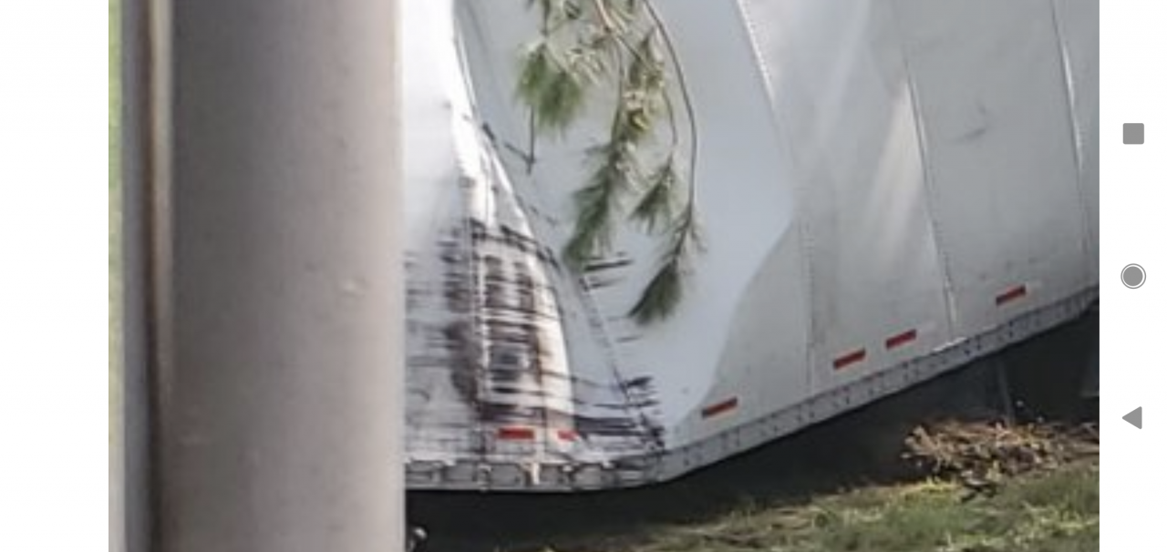 Looks to me like someone made contact with the right side of the trailer, and there isn't a tree near that part of it.