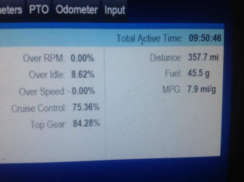 My fuel info on Sunday looks pretty much the same every week. 6.5mpg, 14% OOR. I don't get it. I drive 58~60 and take off slowly. I've even resorted to following their fuel routing off the Qualcomm exactly, and it's always the same. 6.5/14%![]()