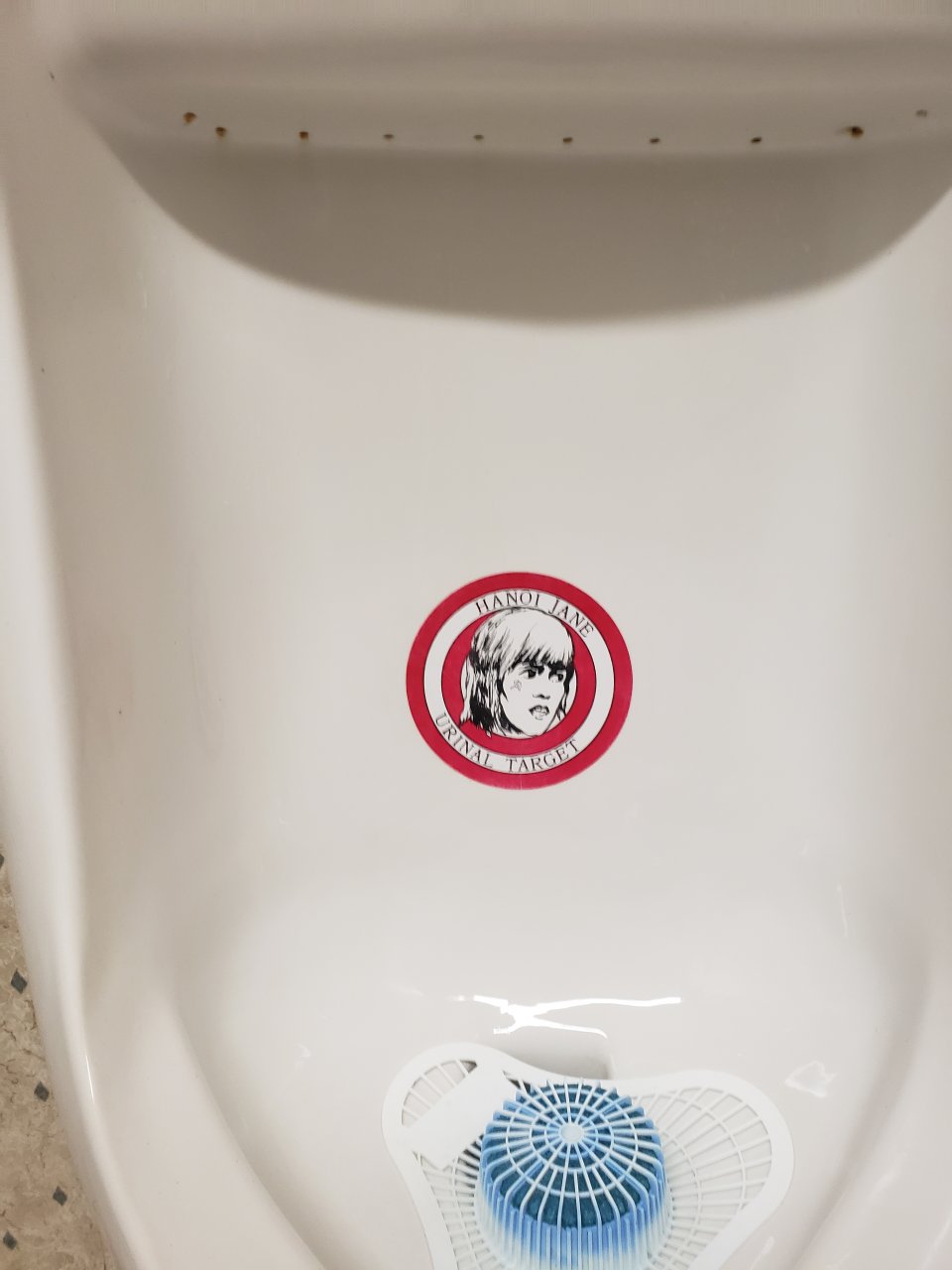 After her trip to Hanoi in '72 that sticker appeared in a lot of places.