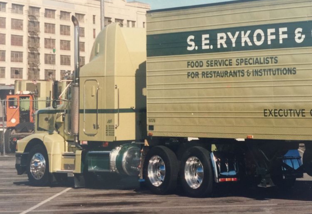 Another West coast food distribution company that had unique trucks was SE Rycoff. Not all their truck were fancy, it seems to me the nice ones all had sleepers, the day cabs were usually plain. I think they were bought out by one of the big food distribution companies in the early 2000's? Those 377 Peterbilts with the Ablebody sleepers were a nice looking combination, to bad I couldn't find a better picture.