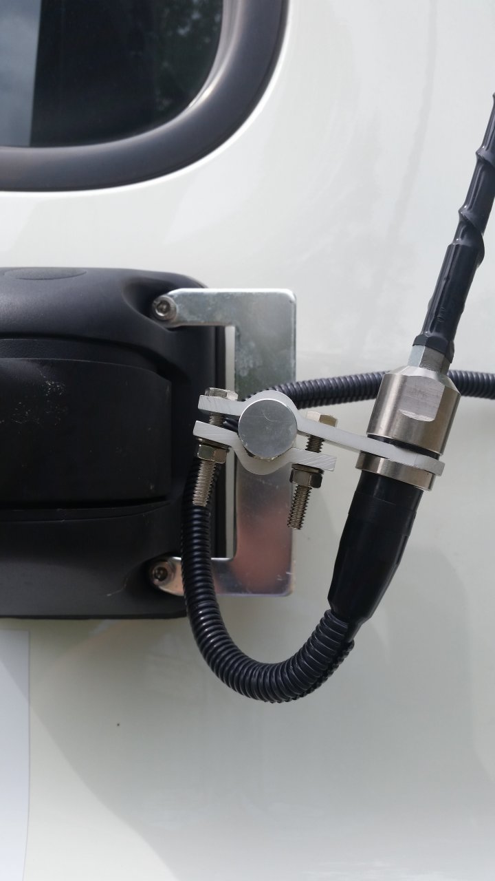 Start with removing the two T40 torx bolts (passenger side), and install the new bracket using the new bolts w/ 6mm Hex key. Install the perch mount, stud/lug, antenna, and coax (PL259 end, NOT Fme).