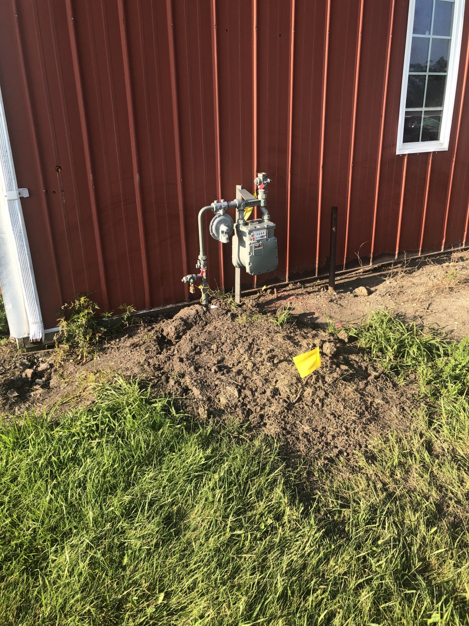 Making headway on the water situation. While we had the trencher there I put a pice of tile in for the down spouts to the ditch. Hope to have running water tomorrow?