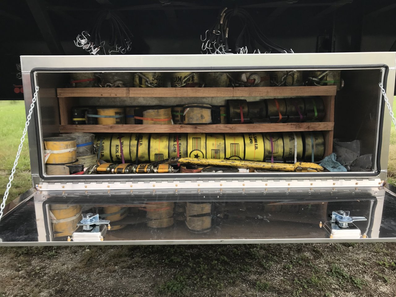 The 40’ straps on the bottom take up a bit of real estate, but fit 13 40’ on the bottom - 12 mixed 26’ and shorter in the middle - and 8 26’ with chain hook on the top.