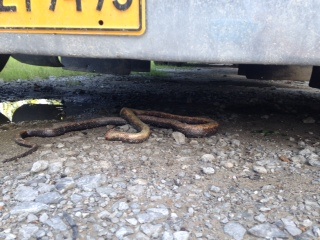 Look under the bumper didn't see it there when I parked last nite. Had my hands on the belts this morn. My question is did the natives decapitate it yesterday or did my lil B model do it this morning when I fired up. After I put the hood down.