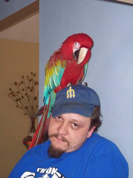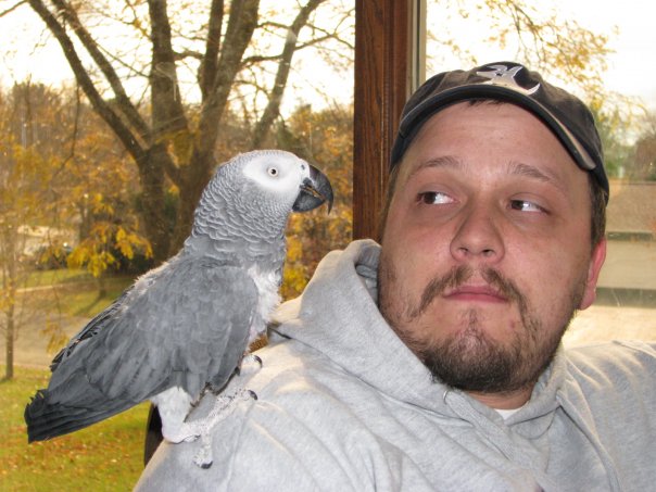 Well, he did have a rather heavy bird claw her way to his head, lol. She's a sweetheart though. She could break every bone in your hand with one easy bite, but she's so gentle. Even when she's PO'd, she so careful with her beak. Well, I say she's a sweetheart, but she's actually reasonably moody, but still, she's still gentle.