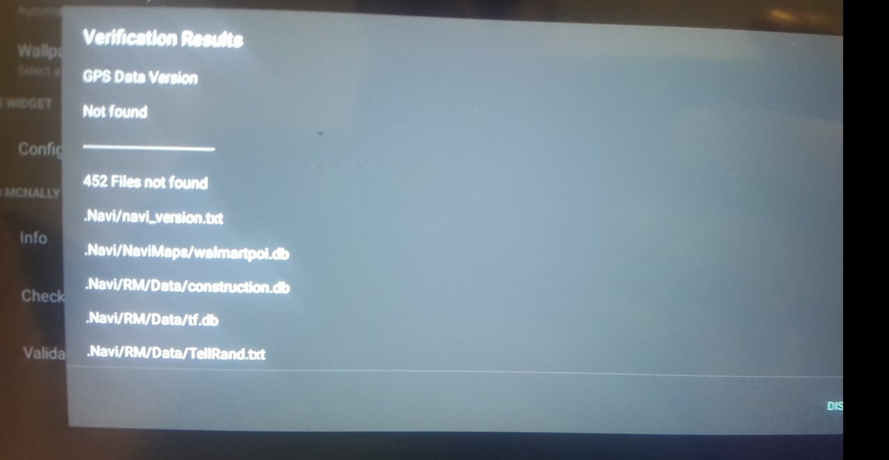 Rand Mcnally launcher Validate current configuration is showing 452 files not found all navi map files are missing.