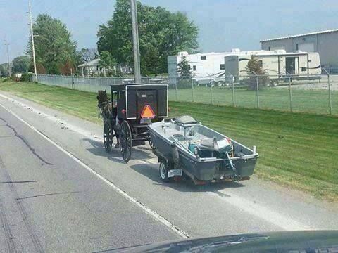 He don't do it. He wheels up a line up, gets out of the buggy, gets in the boat, tells the horse ,Whoa, Back now". Horse put it in like you would do a pup.