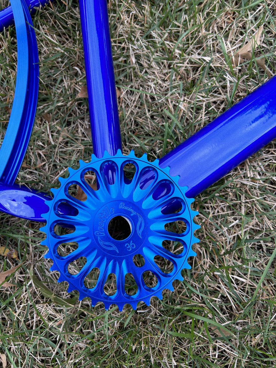 My big wheel BMX is getting closer to completion. The frame, fork, and handlebar are back from powdercoat, after I didn’t like my first color selection. The wheelset is being rehooped after I didn’t care for the first hoops. The custom-built Hope brakesets are on the way. Then, I’m planning a mock-up to decide the next step of, either, going with it or sending all the anodized components off for color matching. I’m a stickler for the correct look, for my BMX stuff. The pic is a peak.