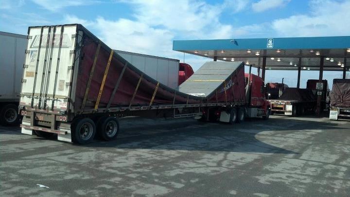 Silly flatbedders. The straps go over the load but under the roof.-LLL- Thanks this.