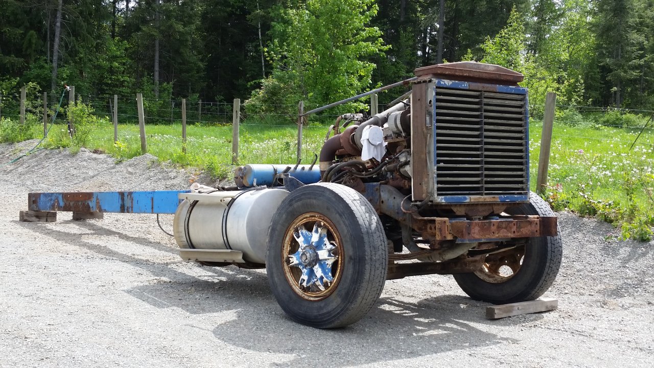 I just talked to a welder and he'll be coming over in the next day or so and we're going to come up with a plan for fixing the frame. I've already got my measurements taken and the plan so far is single drive axle. Going to bring the drive axle forward about 10" from where the forward rear drive axle was previously.
