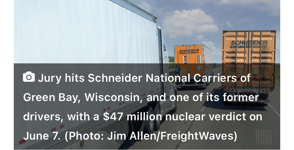 Jury slams Schneider National with $47M ‘nuclear verdict’ in fatal crash (yahoo.com)