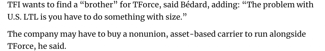 The reason I posted part of that story about TFI (which owns T-force aka UPS) expanding with non-union acquisitions is because it clearly shows how damaging unions are to corporations and their profits. Profits are how companies grow and become stronger, without profits, pay stagnates, and when profits shrink and the freight market goes into a long period of recession, without those record profits during the busy times, companies don't have the adequate resources to stay in business and they close their doors. You act like these corporations are taking their profits and blowing it on unnecessary b.s. Most corporations bank their record profit money, just like we truckers should do, and use the profits above a certain level to expand, then when the market tanks, they still have resources to survive until the next upswing in business.Last edited: May 9, 2025