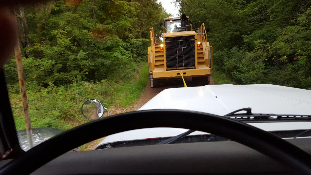 There is a paved access road to the back of the land going up to a county water tower that I can use but it is steep. It starts about 6 or 7% but gets as steep as 14% in a spot or two. My twin screw tractor does have an axle lock.
