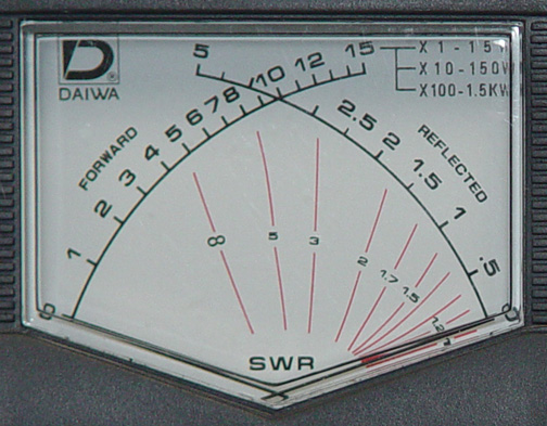 The picture shows how a cross-needle meter works. The forward and reflected needles both rise, and where they cross over a red line shows the SWR. Ideally the reflected needle stays down, for 1:1.Attached Files: