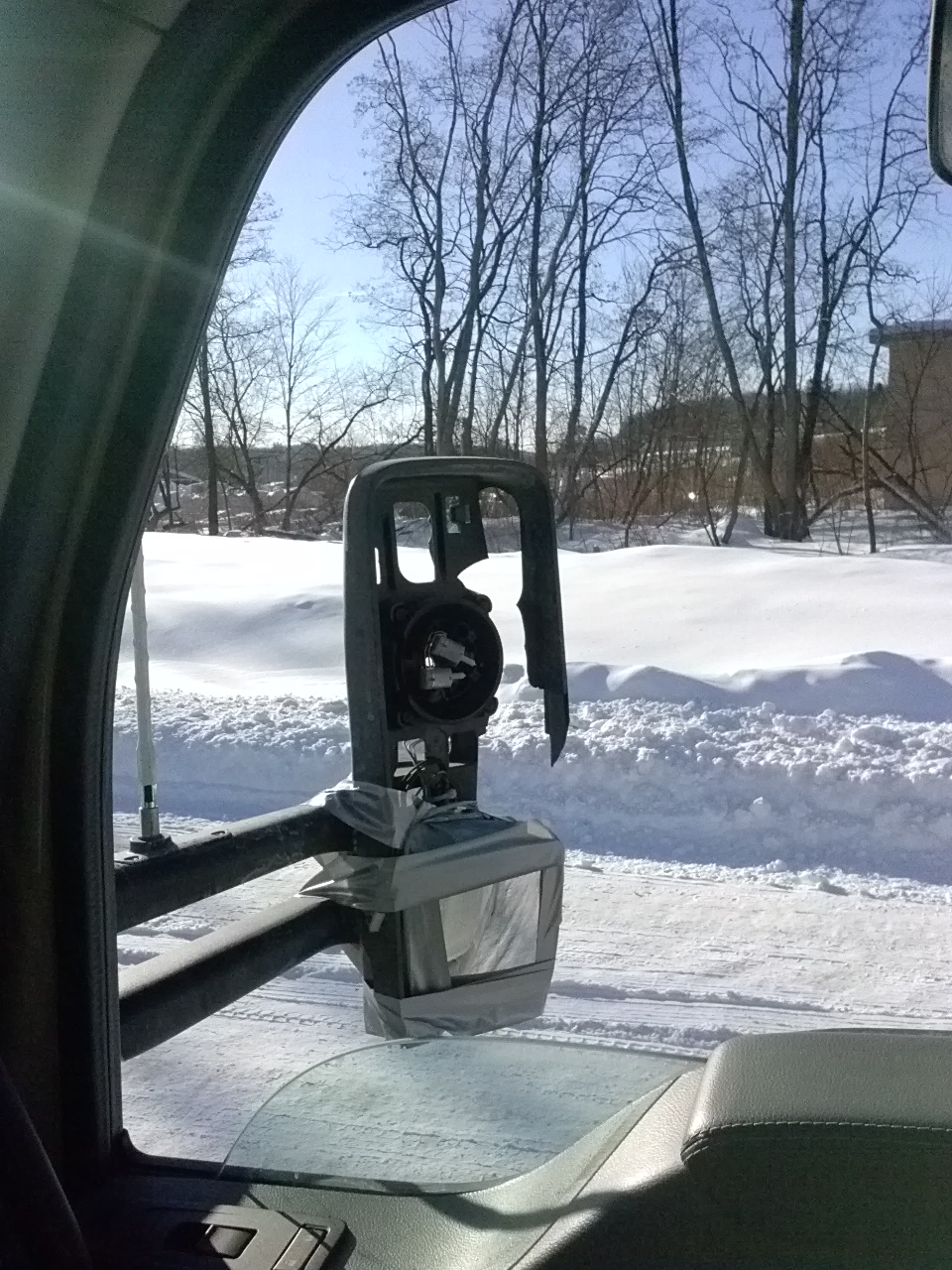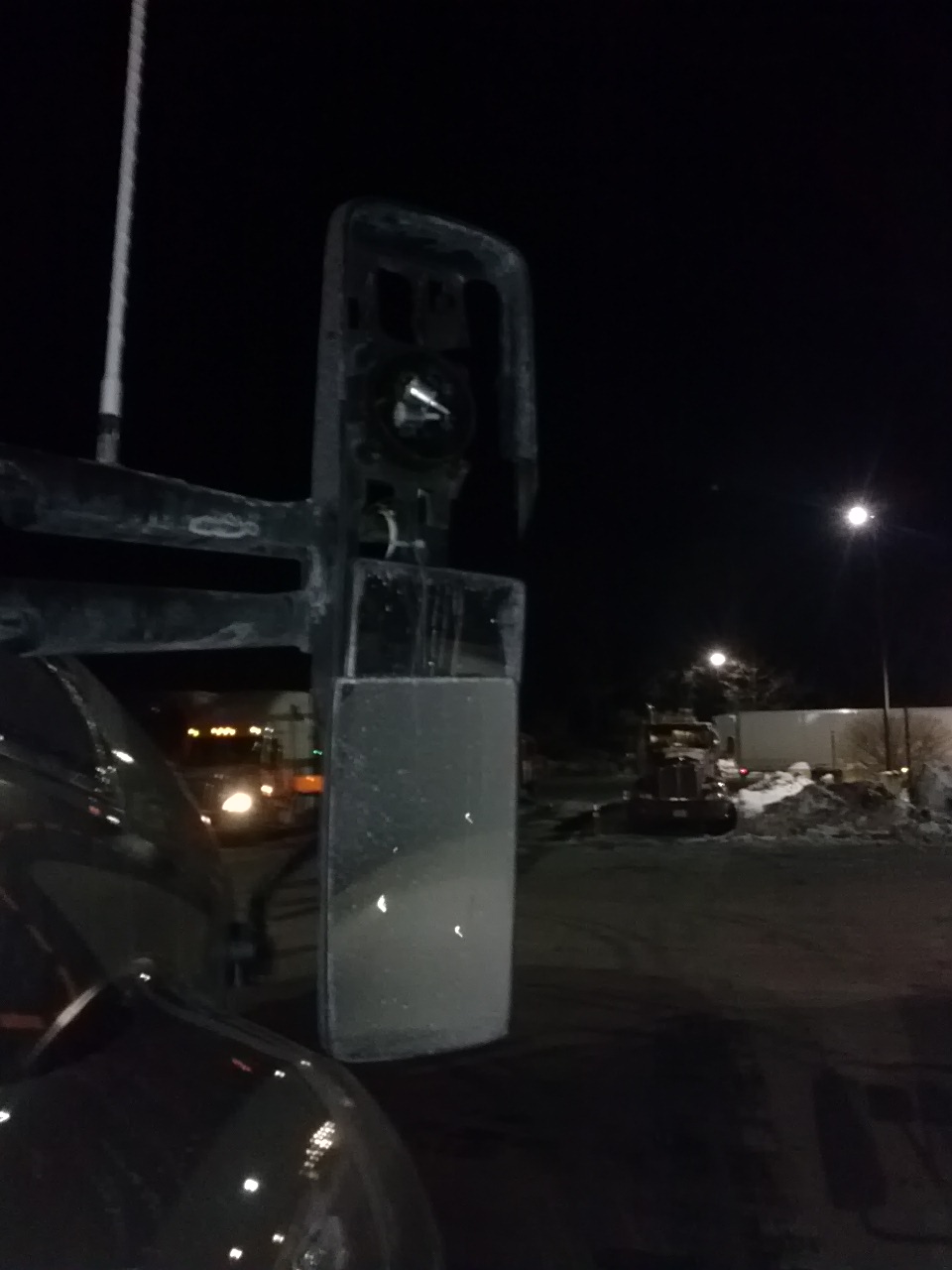 when I suffered with crst I once woke up to the driver side mirror being like that. Codriver said another truck did a hit and run with their trailer while going down the road. Crst was wanting me to drive down to the near by ta to fix it. I told them I'm not driving with a busted mirror so they got someone from ta to come down to help escort me