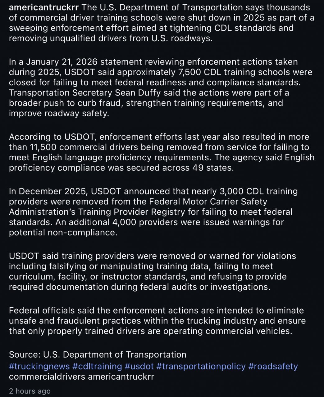 7,500 CDL Schools have been shut down. Wow.