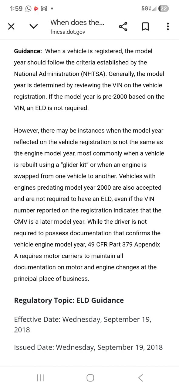 yeah its one of those things you're going to get hassled about sooner or later. If it's a pre-2000 chassis and you're running a paper logbook, nobody would ask questions. Gliders are a loophole I'm not surprised they banned because, you technically *could* plug an ELD into the diagnostic port on most glider kit trucks that had electronic pre-emission engines. Personally I probably would to fly under the radar on the emissions stuff. I've been using Motive and Samsara long enough now to where I would have no interest in going back to filling out a paper logbook every day. Pain in the butt.
