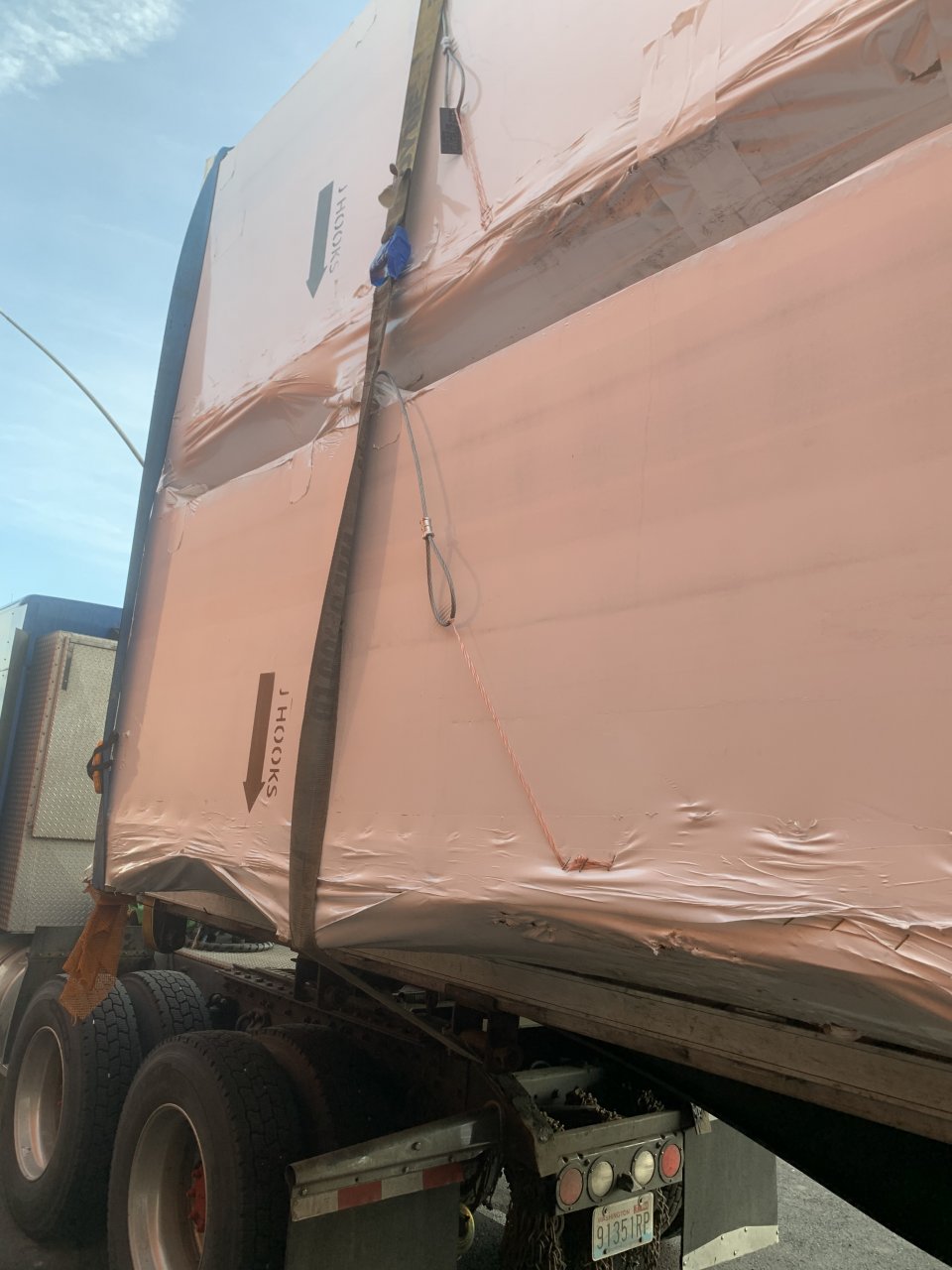 I carry 6 40’ and 50’ straps. I needed 8 for this load, so I took a 30’ strap and one of my short 8’ straps, taped the hooks together and put each end in a winch. The tape just keeps the hooks together incase the strap gets loose.