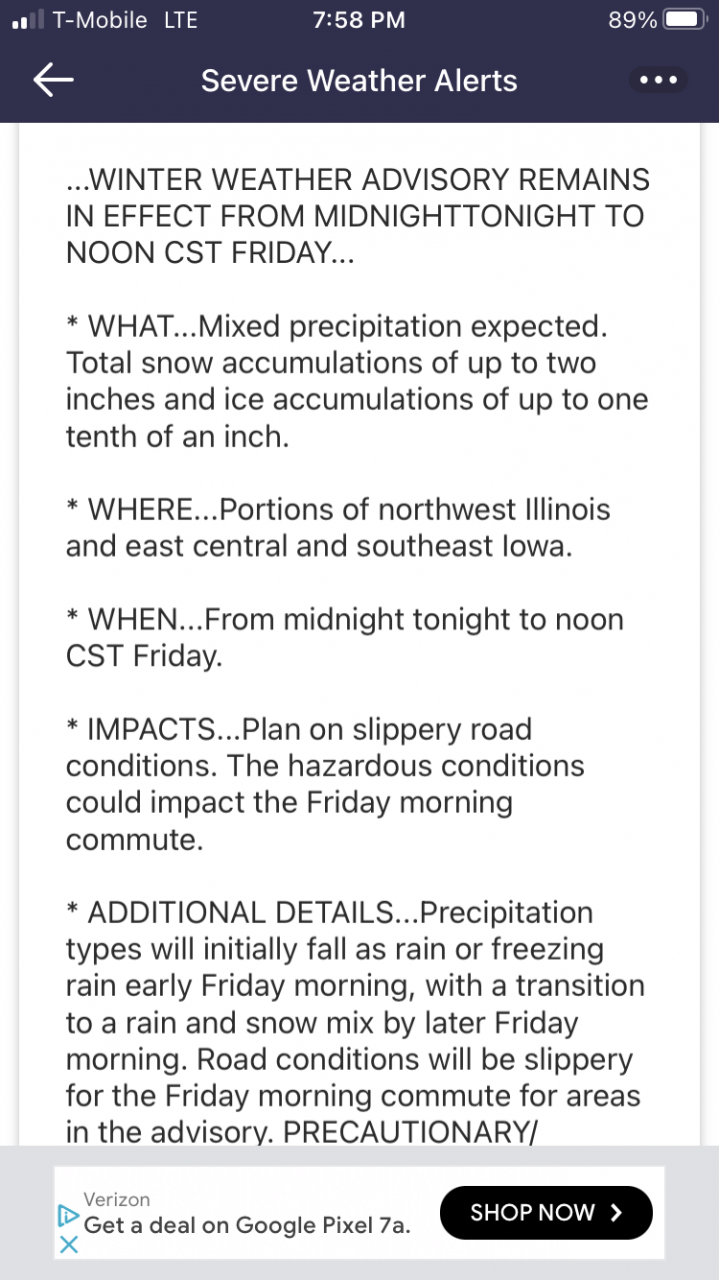 the problem is when you’re 10 hours away and heading north the only thing I can go off of is forecasting to prepare my wife and I for what’s to come. It’s hard to ignore a weather alert, calling for freezing rain and a 10th of an inch of ice.Numb, Opus, Albertaflatbed and 1 other person Thank this.