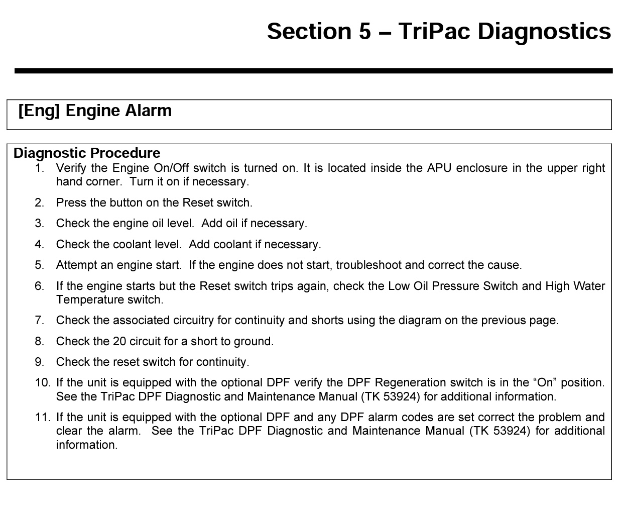 Here are the diagnostic procedures for the ENG code on the old model Tripac. You have a Tripac Evolution, but it may still be helpful.