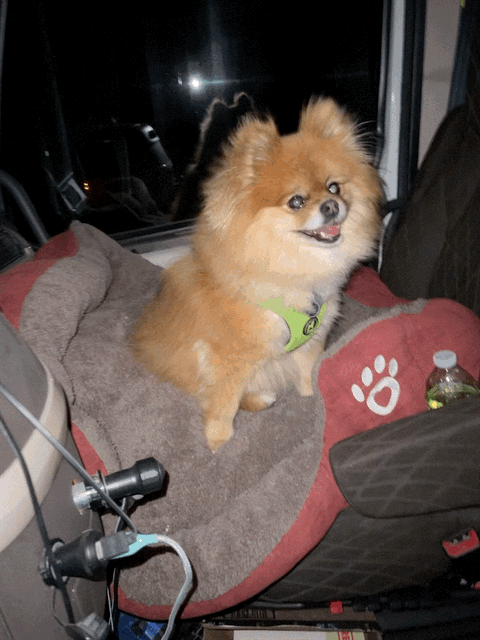 Here's our 2 roadies, the lab was on the truck from 2015 till we had to put him down about 2 months ago for prostate cancer. The boxer we got her in 2018 at 9 weeks old and potty trained her on the truck, it was pretty easy for us as my wife and I ran team so when a pup wakes up it's time to potty so whomever was in the bunk let the other know so we could pull over and take her out. Not sure how well that would work for someone solo but I have to disagree with it being said don't get a pup. They both learned how to use the side steps as they jumped back into the truck so that we didn't have to lift them back in. My wife has since retired but I'm still running solo with my boxer and she loves it, heck the both of them have gotten to sniff all the lower 48 and Canada which I think is awesome. I do have a big bunk sleeper so it makes it easier to have a big breed but I've been in both, actually I teamed when I first started in a regular sleeper and if you can do it with another person don't really see a large dog being a problem either lol. I can say I'm spoiled with the big bunk and being an OO I'll never go back