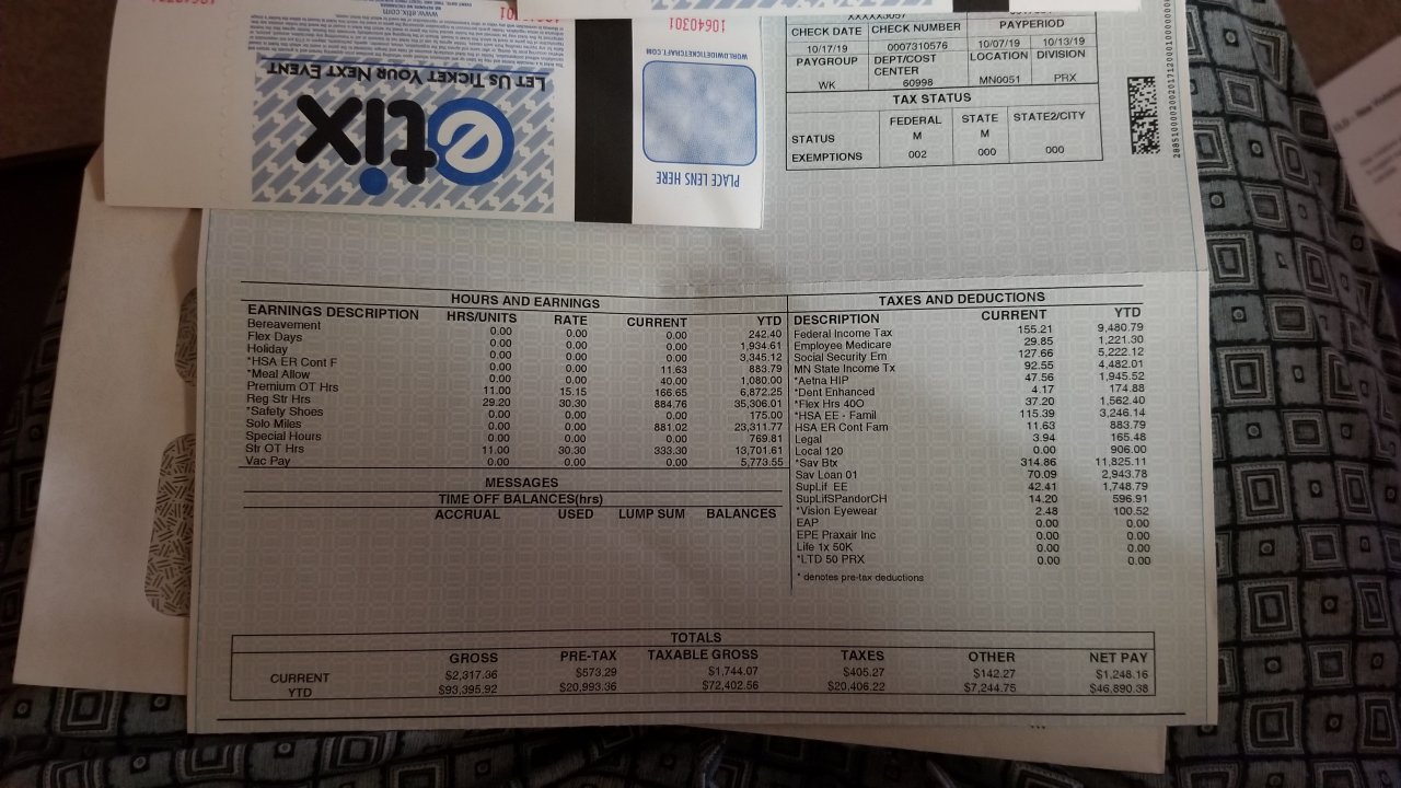 This latest check is a good illustration of what you could make working city p+d, at top pay rate, in a division 1 (northeast) terminal. This is the first, and only entire week that i've worked city at top pay rate; Remember, i started linehaul while still at 3rd year rate. It is/was going slow on linehaul, so i got a chance to work city the entire week:
