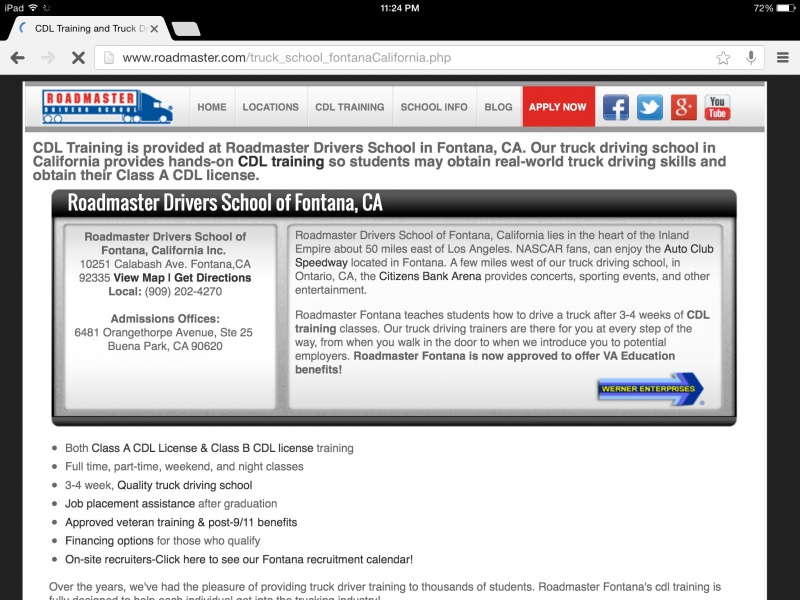 Like I said, Werner does not train their own drivers. Roadmasters has nothing to do with Werner... Roadmasters has locations everywhere and send students to just about every major company in existence. Not just Werner.