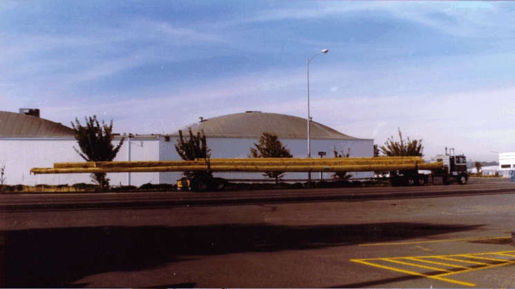 I have driven OD trucks for since 1987. That Pipe truck(Stringer Truck)I have driven since 1992. I now drive a RGN for the most part. There are many types of OD "specific" types of trucks. Long load trucks/trailers depend on what type of load and what kind of terrain. Here is another type of long load truck I drove. It's a Truck flatbed with a Log trailer in tow. This a closer view of a Stringer truck from last year in CA. And now back to our regular schedule.