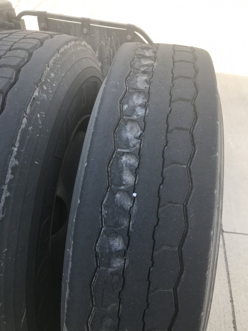 This is the third tire I’ve had this happen to, all drives. Trailer hitting them when I dump my air bags? I don’t think that’s what it was, but I can’t figure anything else.