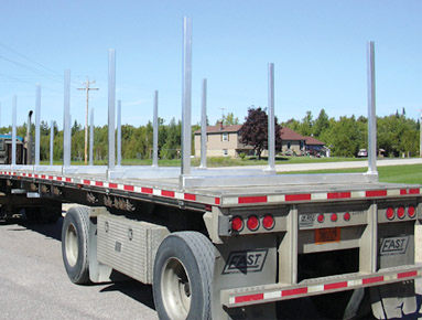 Dumb question from a door swinger but here goes.. I can't find a picture to show you what I'm talking about, but every now and again, I see deadhead flat with maybe 8-10 tall vertical poles mounted in a straight line down the center of the deck. No A-frame or anything just the pipes. So what is the purpose of these? I imagine that the trailer is dedicated to one type of freight but can't figure out what.