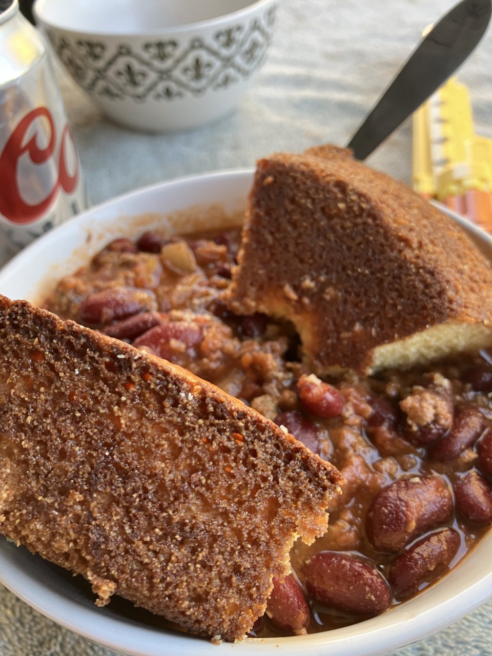 Cornbread and whatever was in the pot— looks like ####, but very tasty