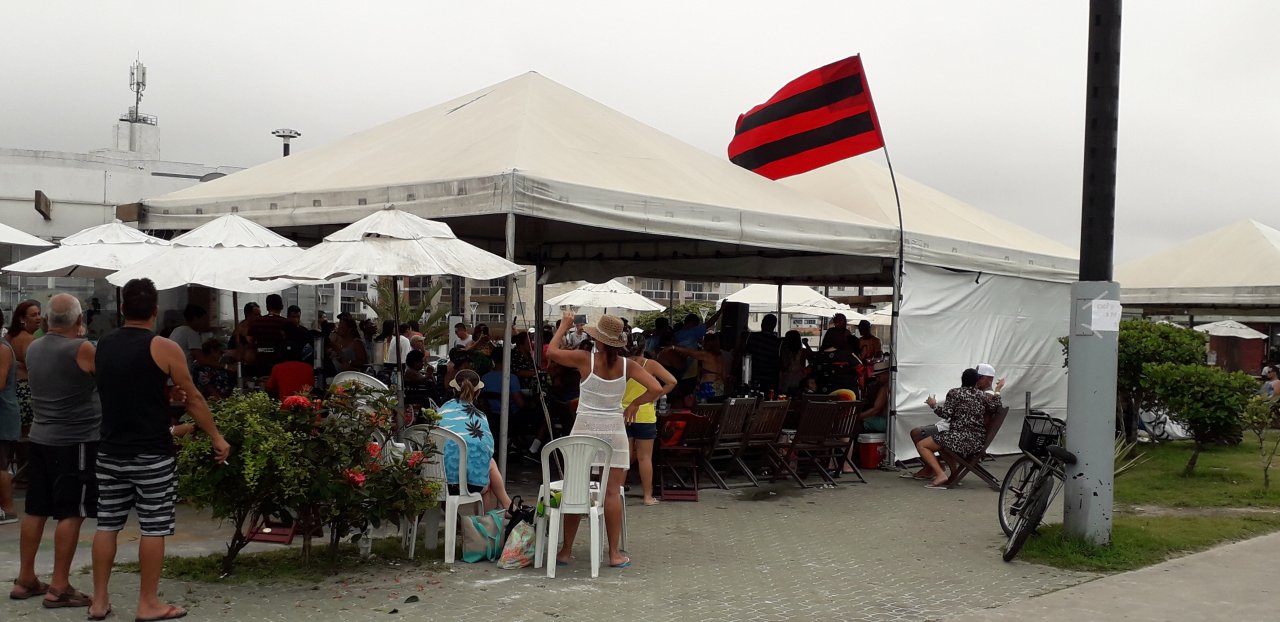 The red and black flag represents one of the soccer teams in Brasil that just won some major championship a few days ago...
