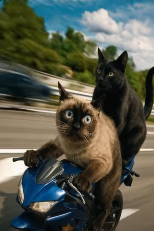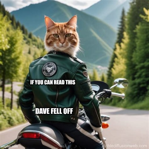 So @Dave_in_AZ — question that has been on my lips since you started posting these pictures of cats riding motorcycles— which we all know that they can’t cause they ain’t got no thumbs to roll the throttle and apply the front brake— but If’n they could, what bike would they OM ride— I got her pictured on a Harley Trike