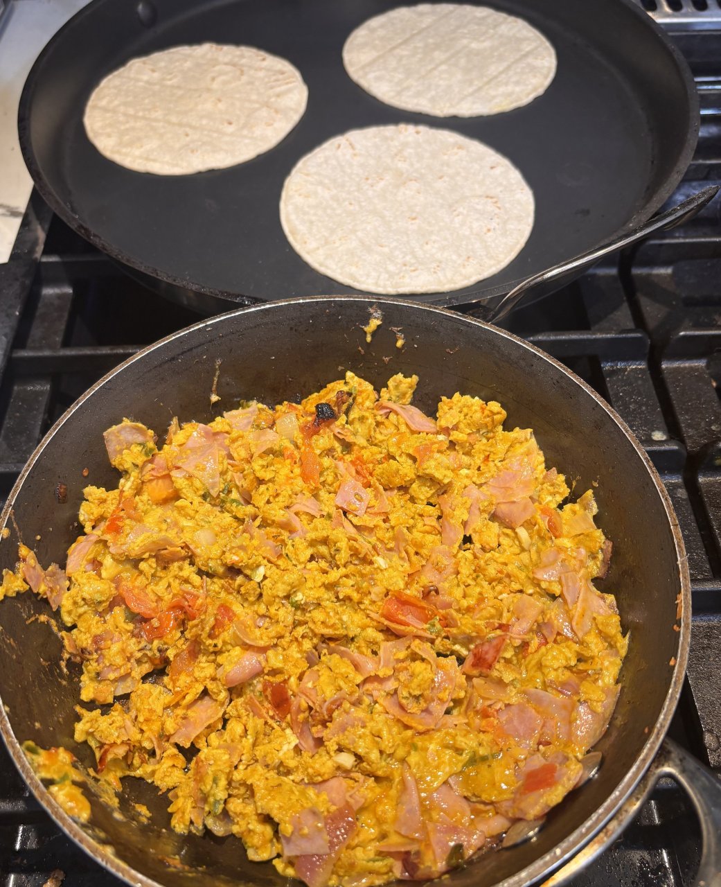 Making a late breakfast omelette, turmeric included