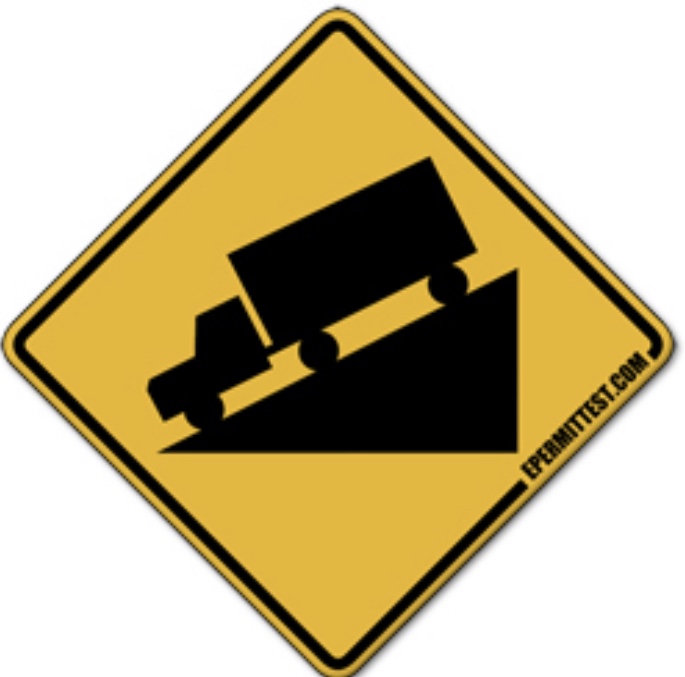 Night, WB on US 80, sign says: Downgrade ahead, trucks shift to lower gear.....