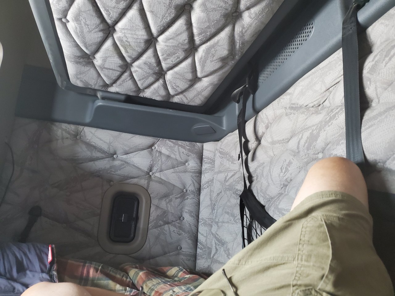 That's one thing I seriously like about the truck I'm driving now. The sleeper berth is wonderful. Not sure I even want to fold down the top bunk. It's just open and lotsa air movement. It's comfortable.