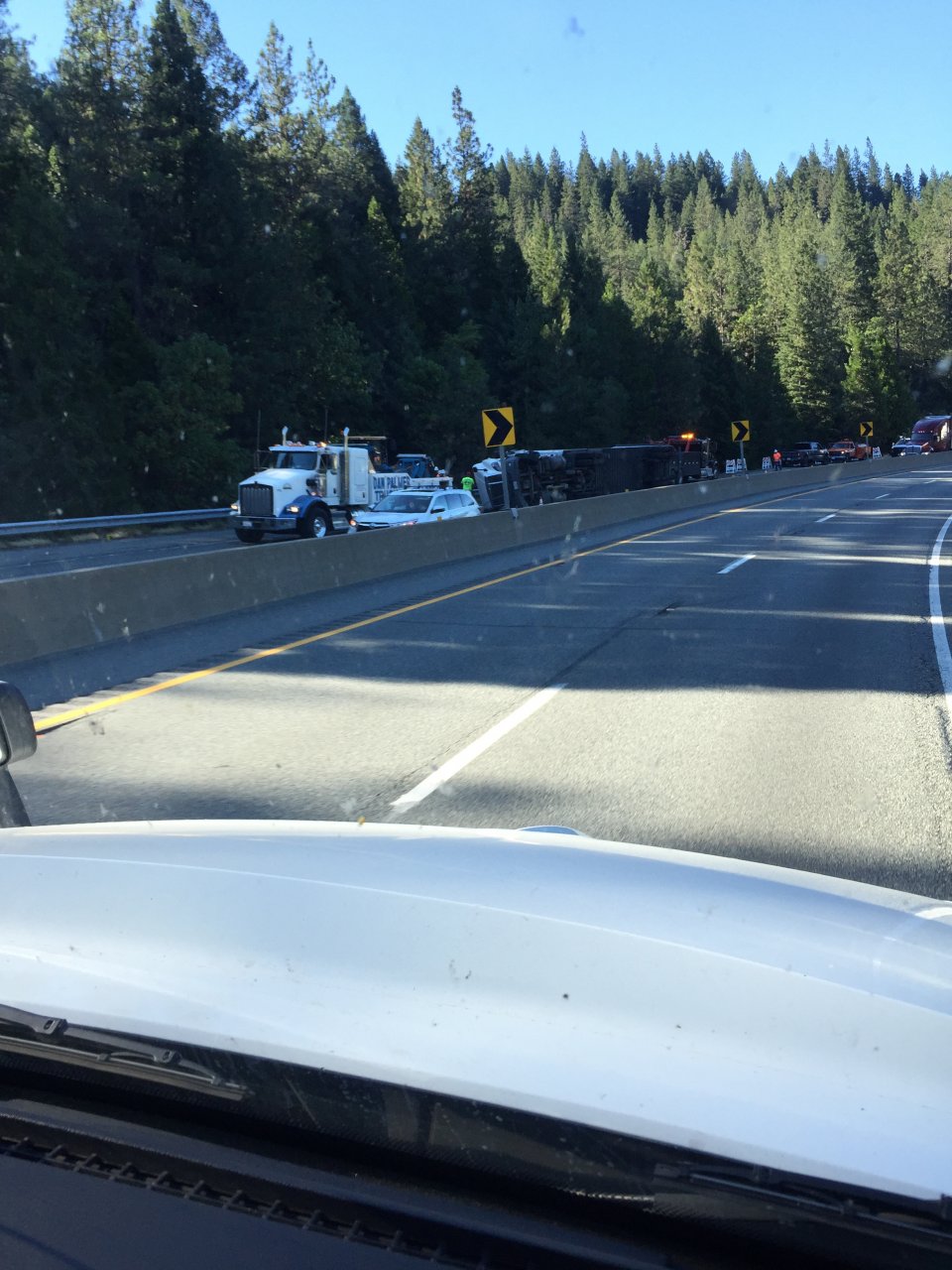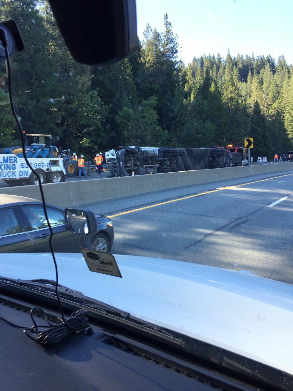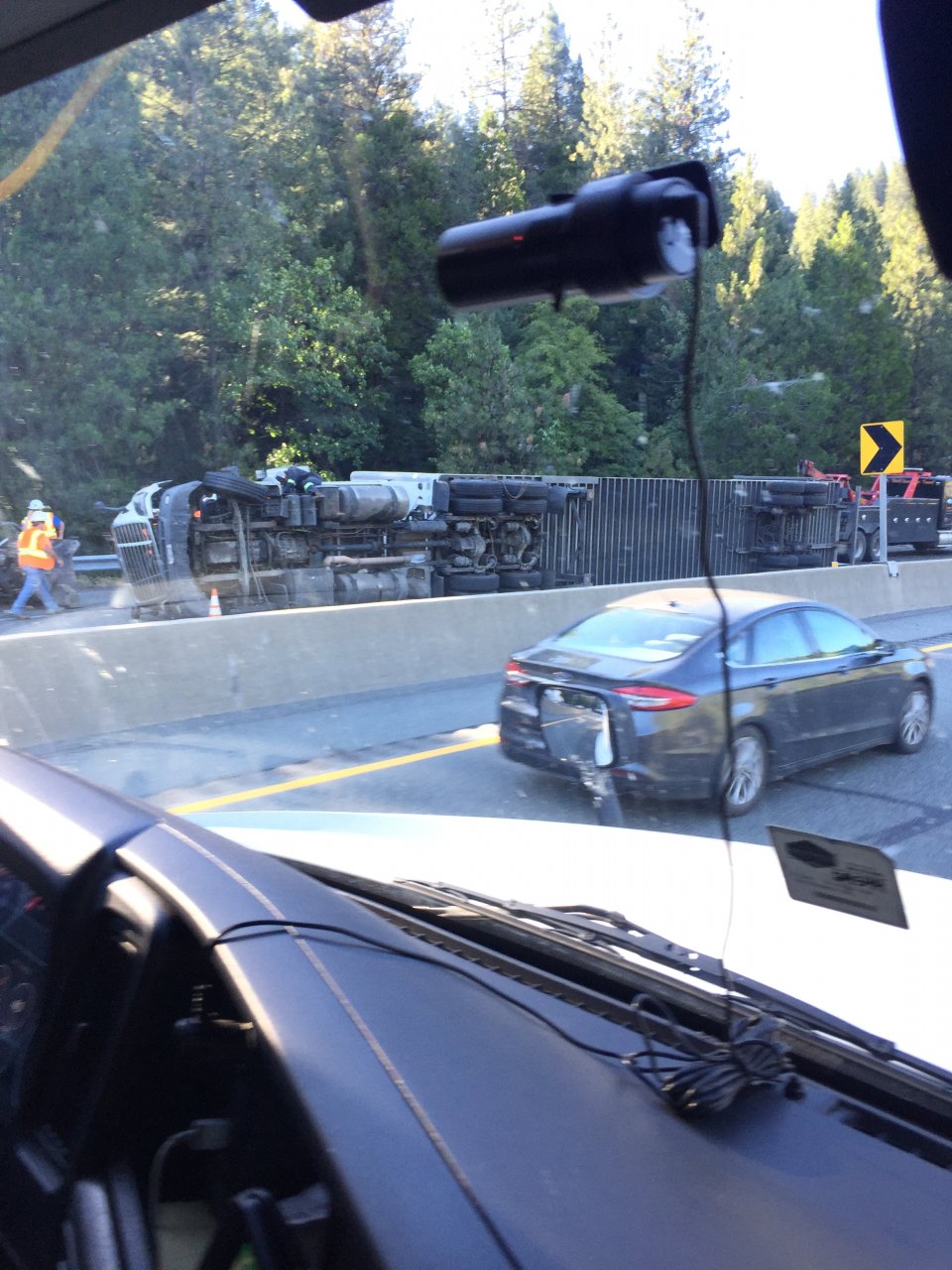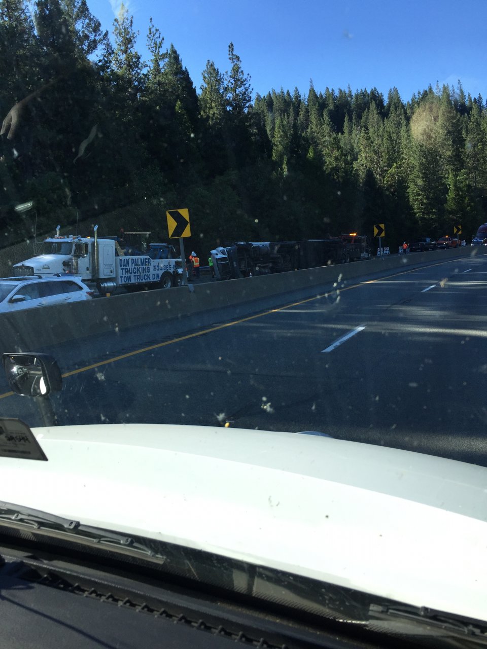 Not a good day to be south bound between Weed and Shasta lake. Rumor over the CB is that it’s a fatality and the roads going to be closed for awhile. The back up seems to be about 10 miles long right now.