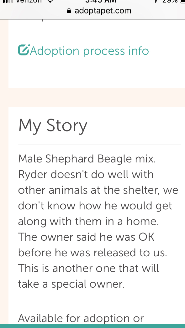 Here’s my coworkers dog, he bought a house in town and the dog didn’t fit in so he took it to the pound.