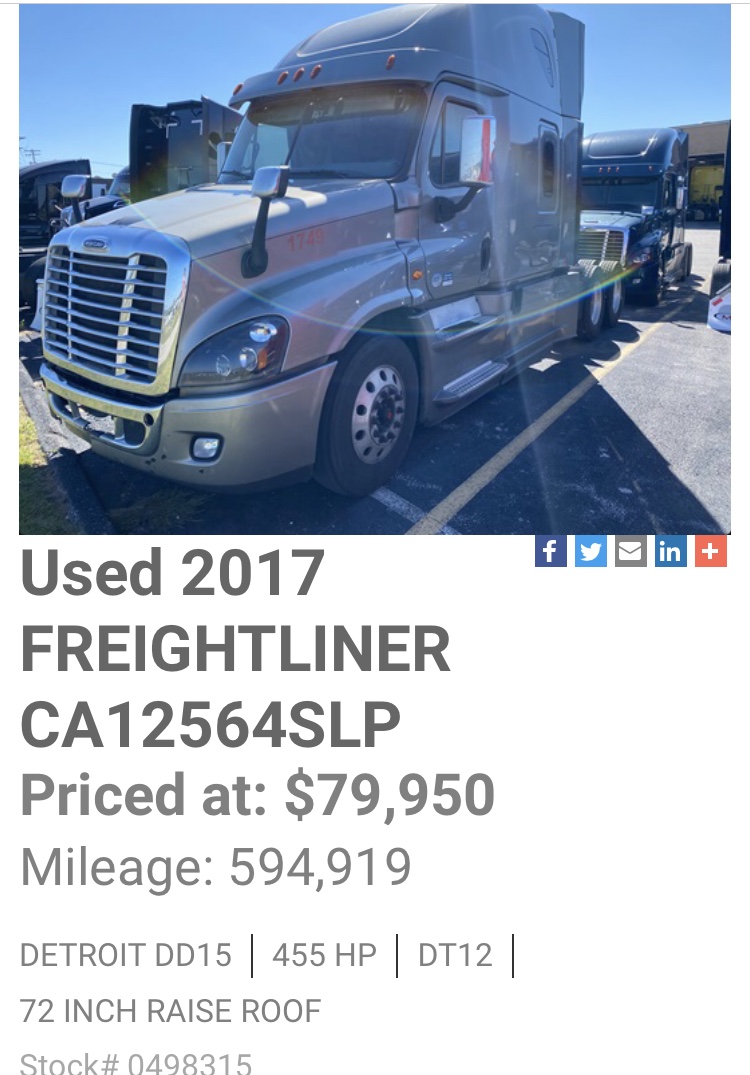 I saw a beautiful 2015 W9. 3(0k on inframed Cummins. Big HP and torque. I say nice Truck, Is like to have one. It’s for sale. How much? Sorry I asked. $90 k total miles on Truck 900+k. So original engine only lasted 600k. Looking at my old Freightliner. Doubt I’ve put 90k including price paid total in it over 12 yrs I’ve had it.