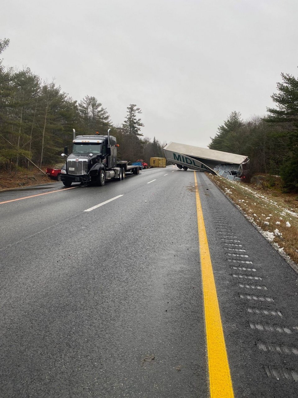 Is that the tractors taillights we see peeping from beneath the parked trailers nose?
