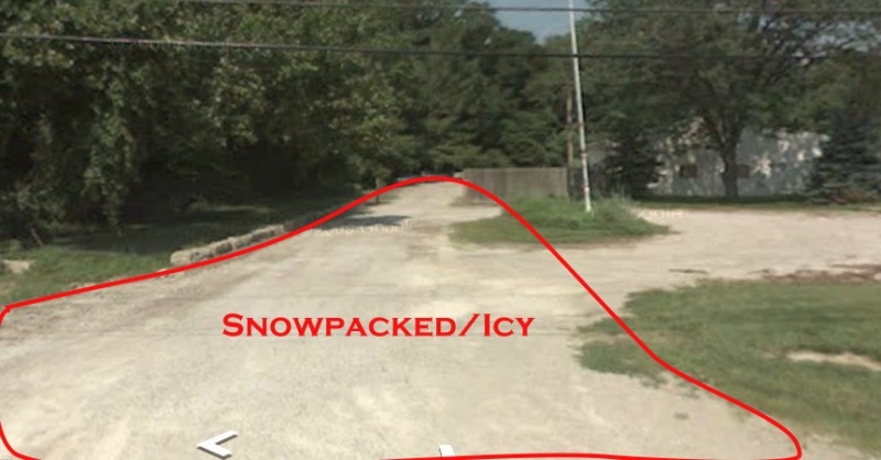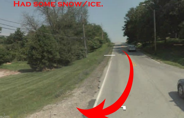 Here's what the street looks like. It's a down-hill grade, add some snow and ice to this.