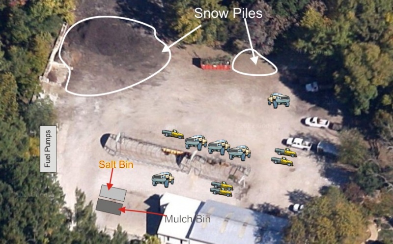The difficulty level keeps increasing. Yesterday I delivered to another landscaping company in KCMO. This was on Green Hills Dr, off of SR-152. Here's some screenshots from Google Maps. It didn't look this way yesterday, they've added fuel pumps and a lot of those pesky vehicles strategically parked in your way, oh and all the snow and ice.