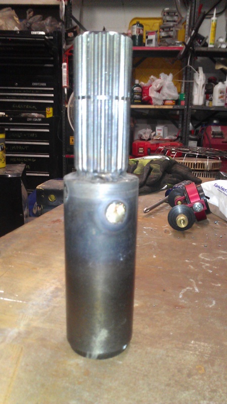 Had to make an adapter shaft, to go from the 700R4 27 spline output shaft, to the Range Rover 25 spline input shaft.