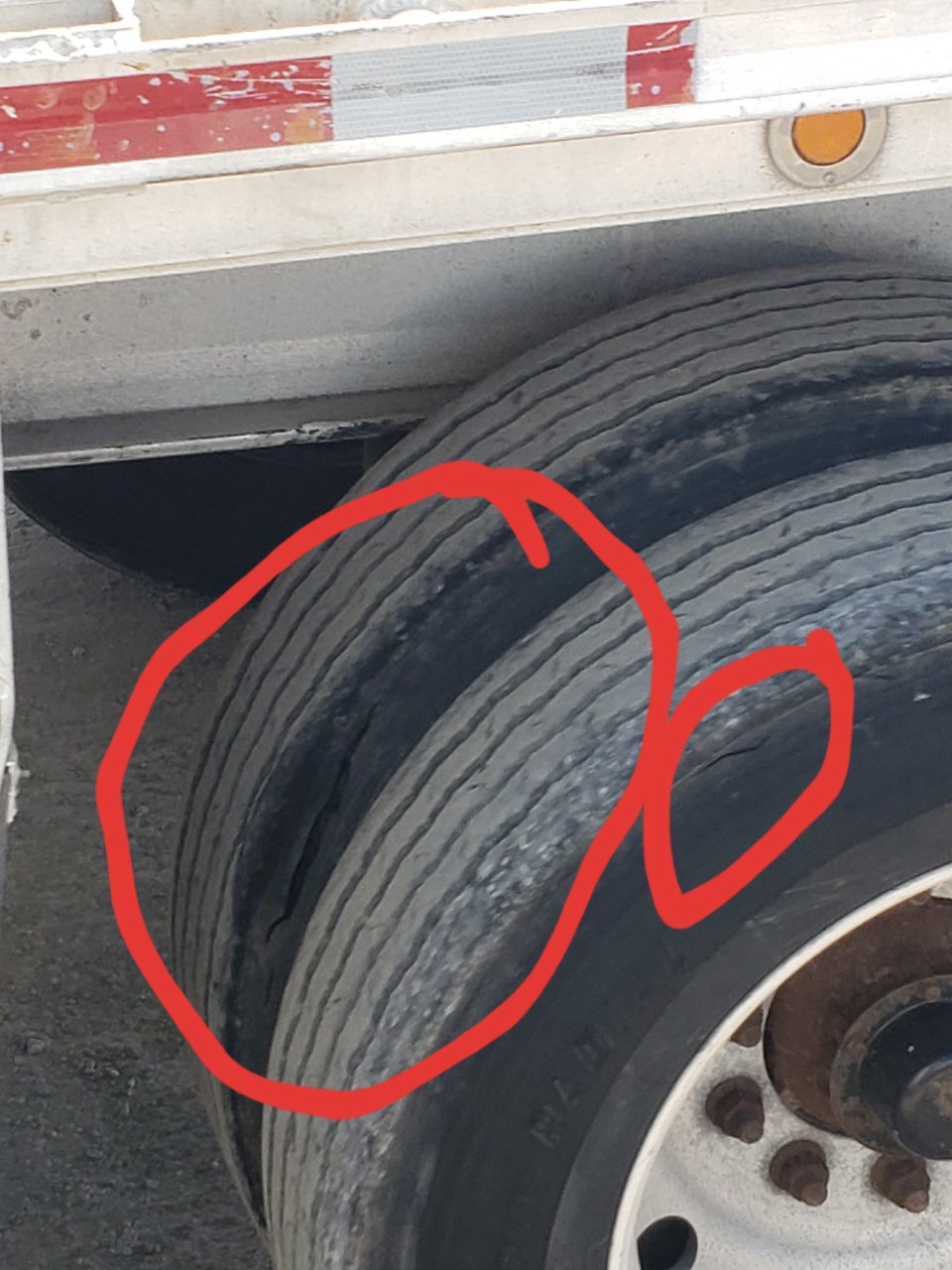 So you try to help others. No never mind 8 bald drive tires, but I seen this split and went over and told the driver. "Well I'ss told the bosses and it's been like that for a month, he's say to run it till she blows". Ok bud just trying to help you. :Driver: