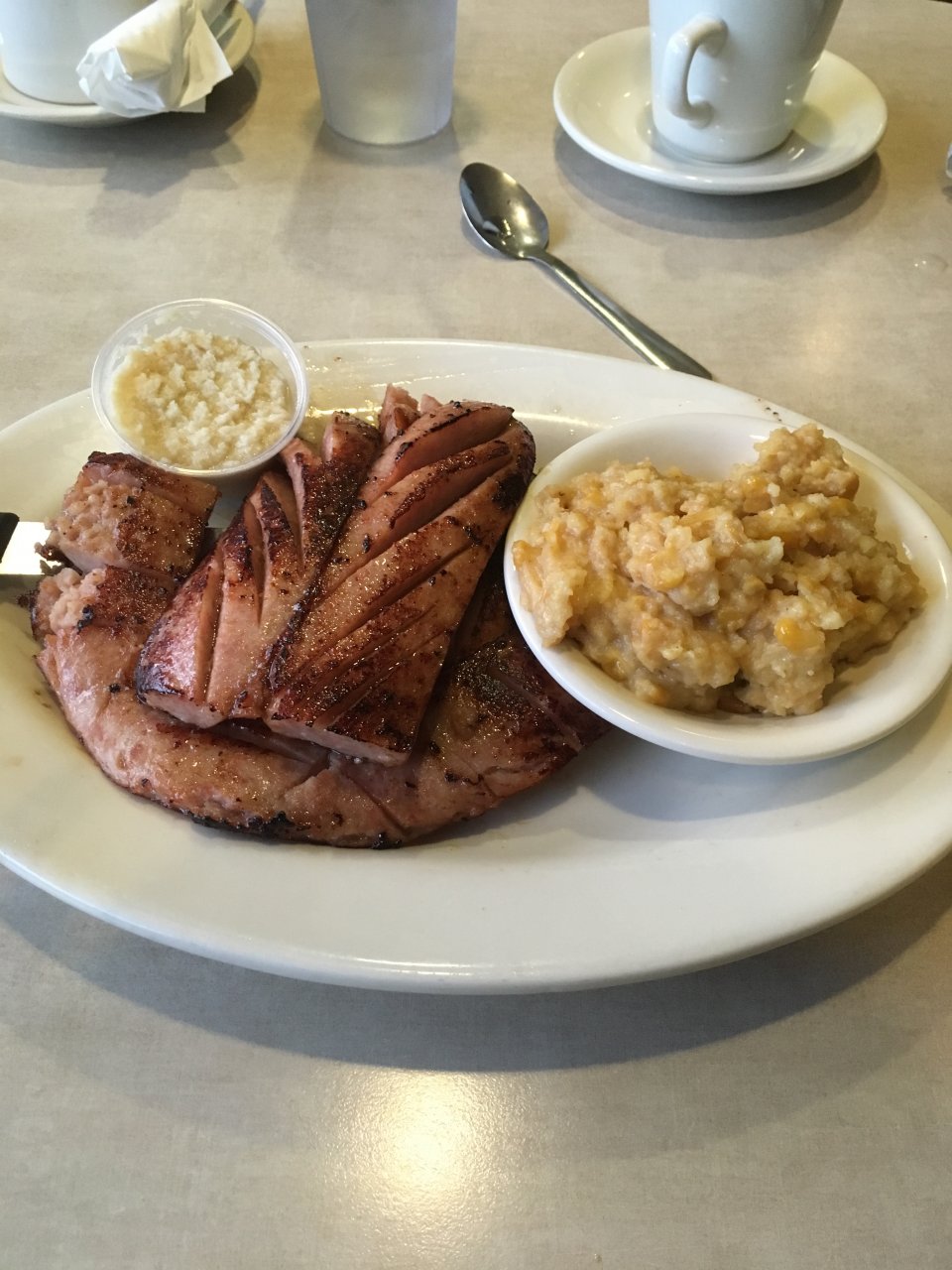 Looks better than I thought it tasted. I never would have thought to pair horseradish and sausage. A friend has been bugging me to try corn pudding, I figgered it was way too sweet for a supper dish. Even the house salad was disappointing. Win some lose some -