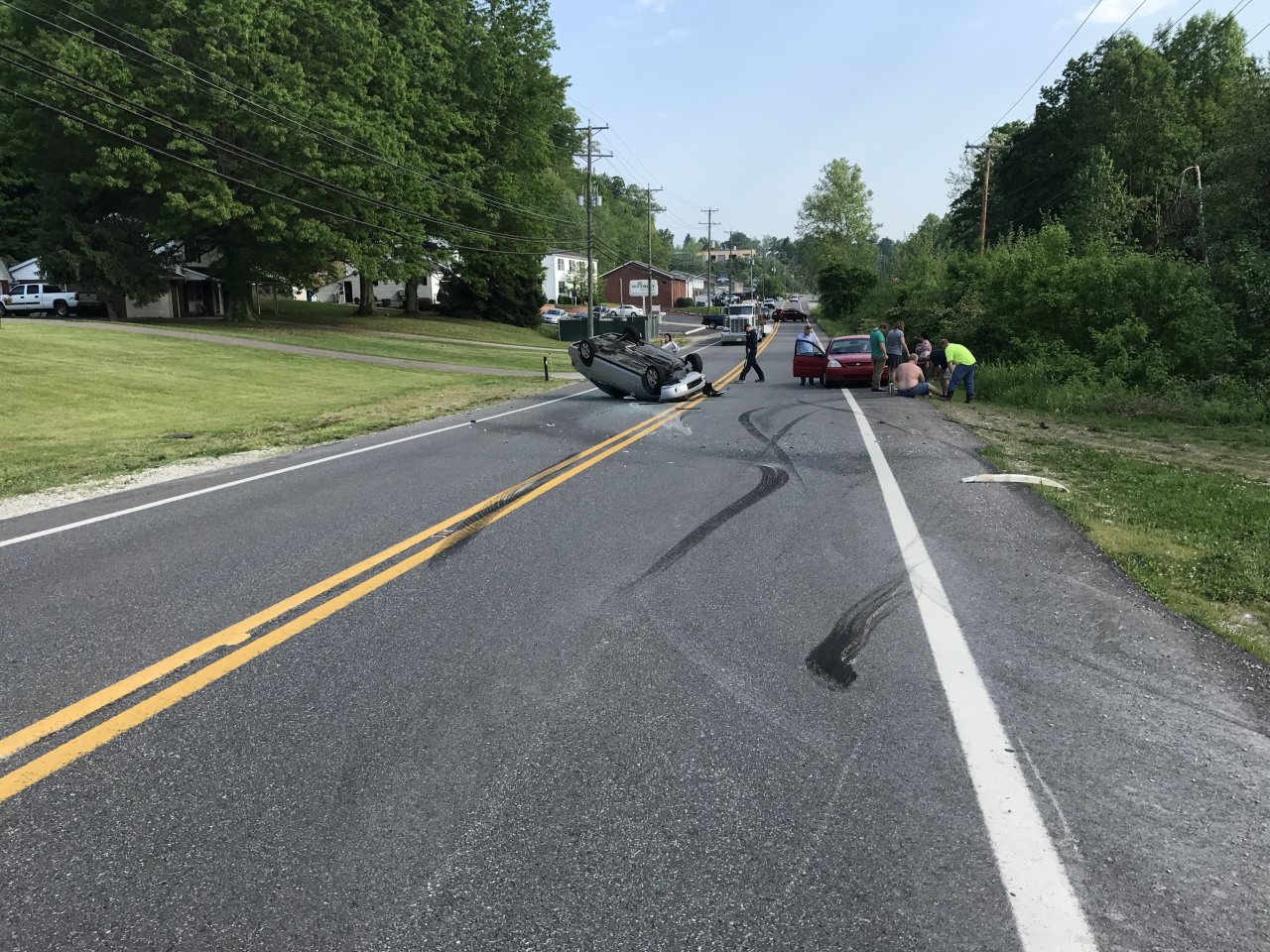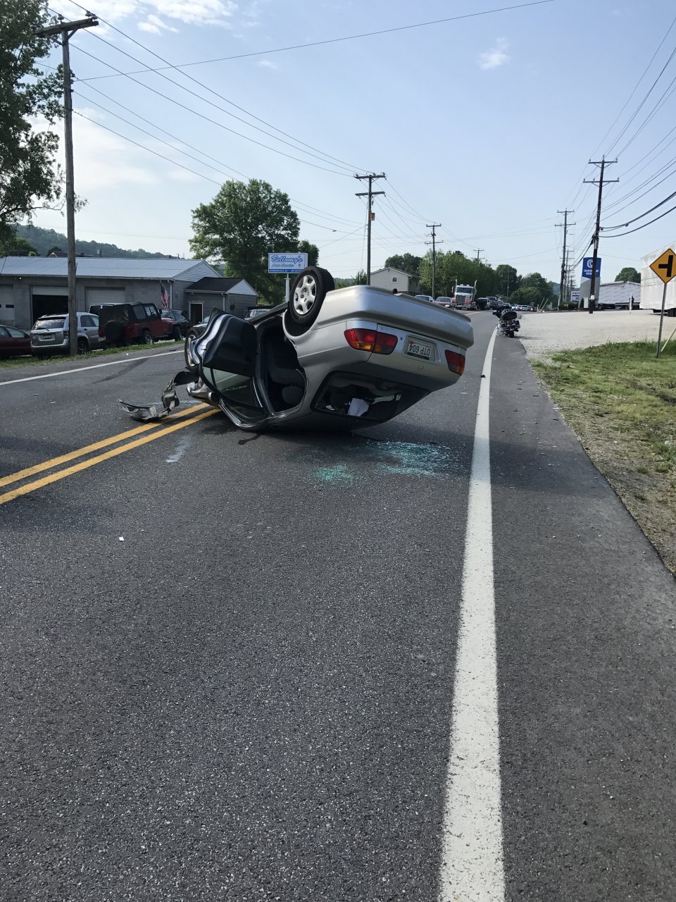 This just landed in front of me little while ago.... that's my Harley in the background. Silver car was going opposite direction when red car pulled out in front of him. Silver car went end over end and landed in front of me, I was on the binders trying to keep it up when I hit the grass.